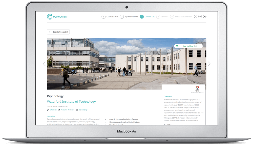 I have had a similar positive experience with MyUniChoices in helping students clarify their third level college choices at the beginning of 6th year. The MyUniChoices workbook provides each student with a detailed description of their preferred course areas and the relevant courses available in Ireland, the UK and in recent years, programmes taught exclusively in English across European universities. Therefore, I have no hesitation in recommending MyFutureChoice’s programmes to you, my colleagues.”